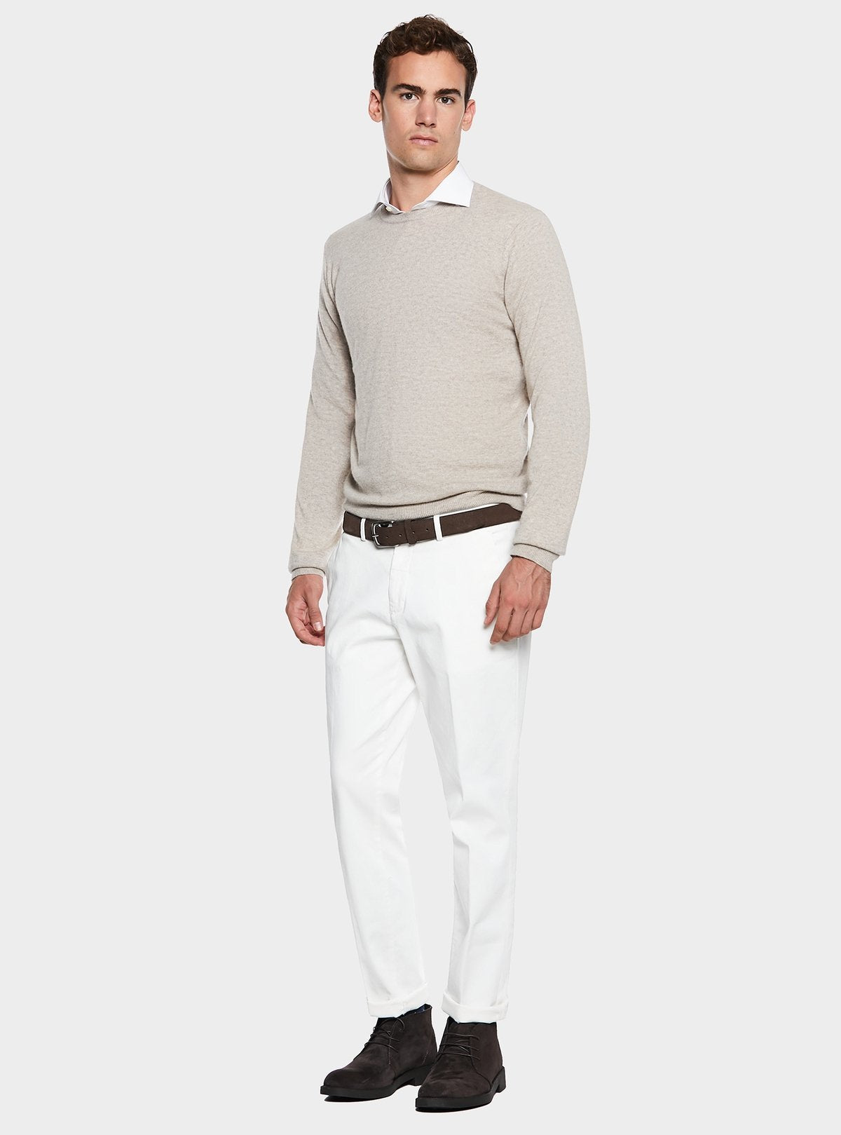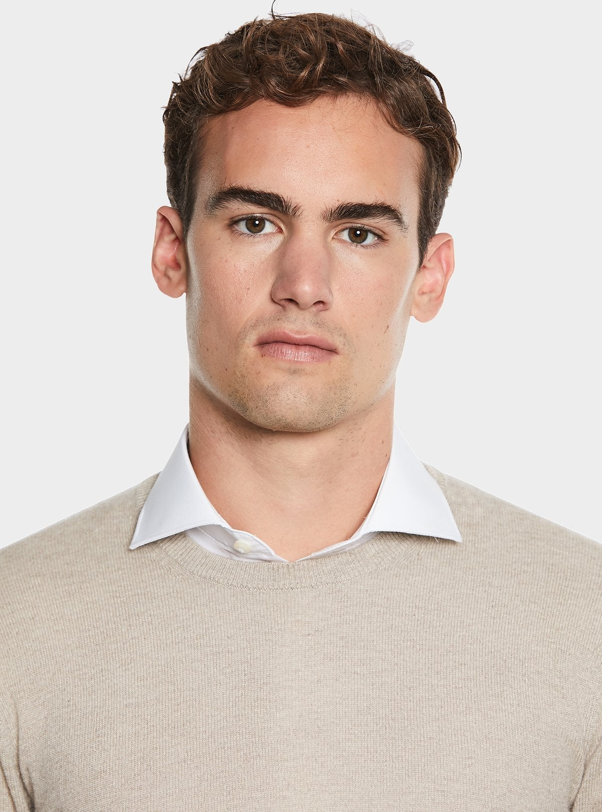 Maglia girocollo in 100% cashmere di finezza 12, caratterizzata da un taglio regular fit che assicura una vestibilità comoda e elegante. I polsi, il collo e il fondo a coste conferiscono un tocco di stile e struttura, rendendo questo capo perfetto per ogni occasione, dal casual al più raffinato. La morbidezza e il calore del cashmere offrono un comfort avvolgente, ideale per le giornate fresche. Questa maglia versatile può essere facilmente abbinata a pantaloni, jeans o sotto una giacca, aggiungendo un tocco di lusso al tuo guardaroba. Il modello in foto indossa la taglia L ed è alto 186 cm.